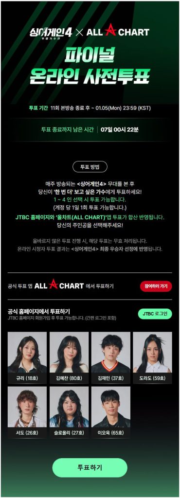 For those who have the ability to vote through the official channels, your direct support is invaluable. This can be done through the JTBC website’s online voting page or via the All Chart app, where every vote is a crucial expression of support during this decisive period.